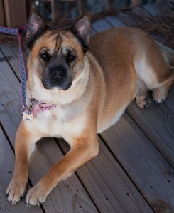 Chauncie is a 70 lb mixed-breed — a mix between a drool bucket and love sponge! Weak she is not. It is not uncommon for passing school boys and girls to say, “Gee mister, you have a neat dog, but it looks kind of scary!”